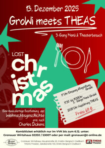Lassen Sie sich weihnachtlich einstimmen mit einem wunderbaren 3-Gang Menü im GRONAUER WIRTSHAUS (GroWi) und genießen Sie danach die Aufführung LOST CHRISTMAS im THEAS Theater.