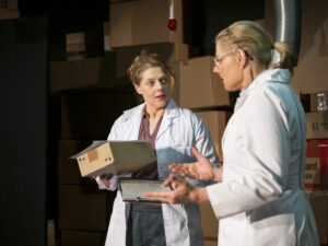 Zwei Frauen im Untergeschoss eines Medikamentengroßhandels. Es gibt hier unten nur sie, künstliches Licht und künstliche Belüftung. Eine Gegensprechanlage ist der einzige Kontakt nach außen. „Am besten ist, nicht nachdenken und weiterarbeiten. Heute gibts Gott sei Dank zu tun.“ Doch die junge Frau will sich nicht anpassen, nicht so werden wie ihre ältere Kollegin. Sie stellt unbequeme Fragen, eckt an und fordert die bestehende Ordnung heraus. „Es werden zwei mögliche Wege gezeigt, die beide ein Extrem sind. Der eine ist die Anpassung, der andere ist das Ausbrechen.“ (Der Autor über das Stück.) Doch wer sind diese beiden Frauen, die in einem erstarrten System um ihre Menschlichkeit ringen? Und ist alles so wie es scheint oder verbirgt sich noch ein anderes Geheimnis dahinter?